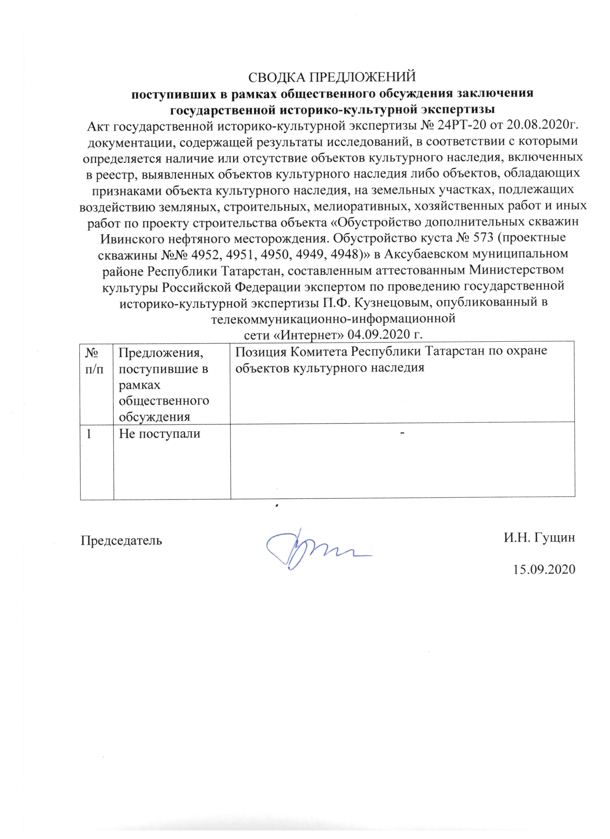 Акт государственной историко-культурной экспертизы документации, содержащей результаты исследований, в соответствии с которыми определяется наличие или отсутствие объектов, обладающих признаками объекта культурного наследия, на земельном участке, подлежащем воздействию земляных, строительных, мелиоративных, хозяйственных работ и иных работ, отводимом под объект: «Обустройство дополнительных скважин Ивинского нефтяного месторождения. Обустройство куста № 573 (проектные скважины №№ 4952, 4951, 4950, 4949, 4948)» в Аксубаевском муниципальном районе Республики Татарстан