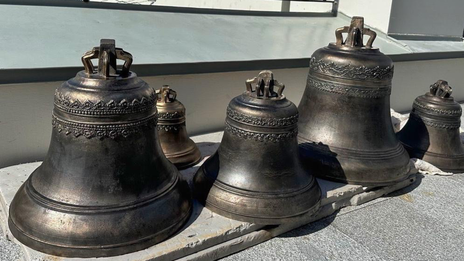 Всего отлито 9 колоколов, самый большой колокол весом 473 кг.